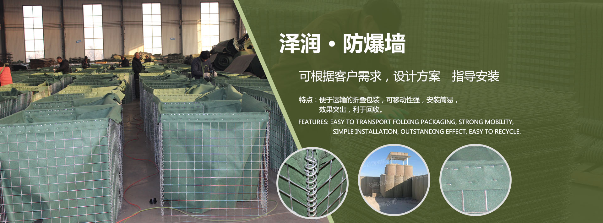 我公司主要產品有:防爆籠、防爆網、防爆墻、鎖扣沙袋、網箱、防洪墻、防御堡壘、隔爆屏障、警戒掩體、可折疊掩體、艾斯科防爆墻、防爆墻掩體等防爆墻產品。
